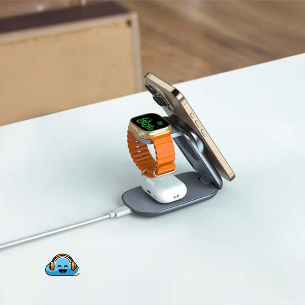شارژر بیسیم MagFold سه کاره Green Lion یک شارژر زیبا، سریع و هنری است. این شارژر از مواد ABS، سیلیکون و PC با آهنرباهای N52 برای ترازبندی ساخته شده است. استفاده از آهنرباهای N52 به این معنی است که همیشه به طور ایمن تراز شده و شارژ میشود.