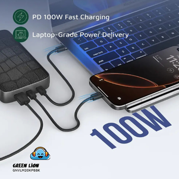 Green Lion Valmont 20000mAh Power Bank PD 100W- Black