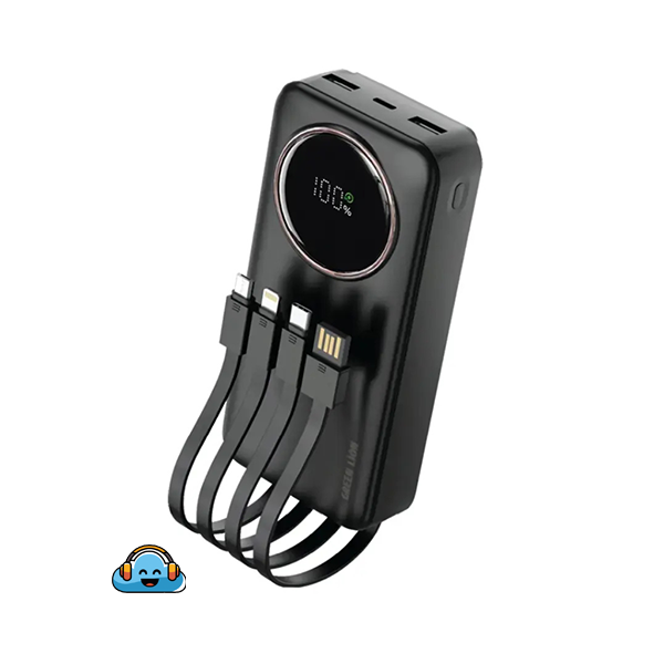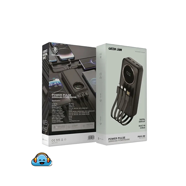 پاوربانک Green Lion Power Pulse 20000mAh، یک راهکار شارژ همهکاره و با کارایی بالا، در حال حرکت احساس قدرت کنید. این پاوربانک که از مواد بادوام ABS + PC ساخته شده است، قابلیت اطمینان را با سبکی ترکیب میکند. با ظرفیت باتری عظیم 20000 میلیآمپرساعت، قدرت بیپایانی را به دستگاههای شما ارائه میدهد. این پاوربانک دارای گزینههای ورودی متعددی است: یک پورت Type-C با پشتیبانی از 22.5 وات و شارژ از طریق کابل USB-A برای شارژ سریع و آسان. علاوه بر ارائه خروجیها، دارای 2 پورت USB-A، یک پورت Type-C و کابلهای یکپارچه Lightning، USB-Micro و Type-C است. این پاوربانک شارژ سریع تا 22.5 وات را برای طیف وسیعی از دستگاهها فراهم میکند. صفحه نمایش دیجیتال وضعیت باتری را نشان میدهد، در حالی که کابلهای داخلی آن را قابل حملتر میکنند، زیرا به لوازم جانبی اضافی کمتری نیاز است. چه گوشی هوشمند، تبلت یا هر وسیله دیگری باشد، پاوربانک Green Lion Power Pulse راندمان عالی و شارژ سریع را ارائه میدهد، از این رو در استفاده روزانه و حتی در طول سفر بسیار ضروری است.